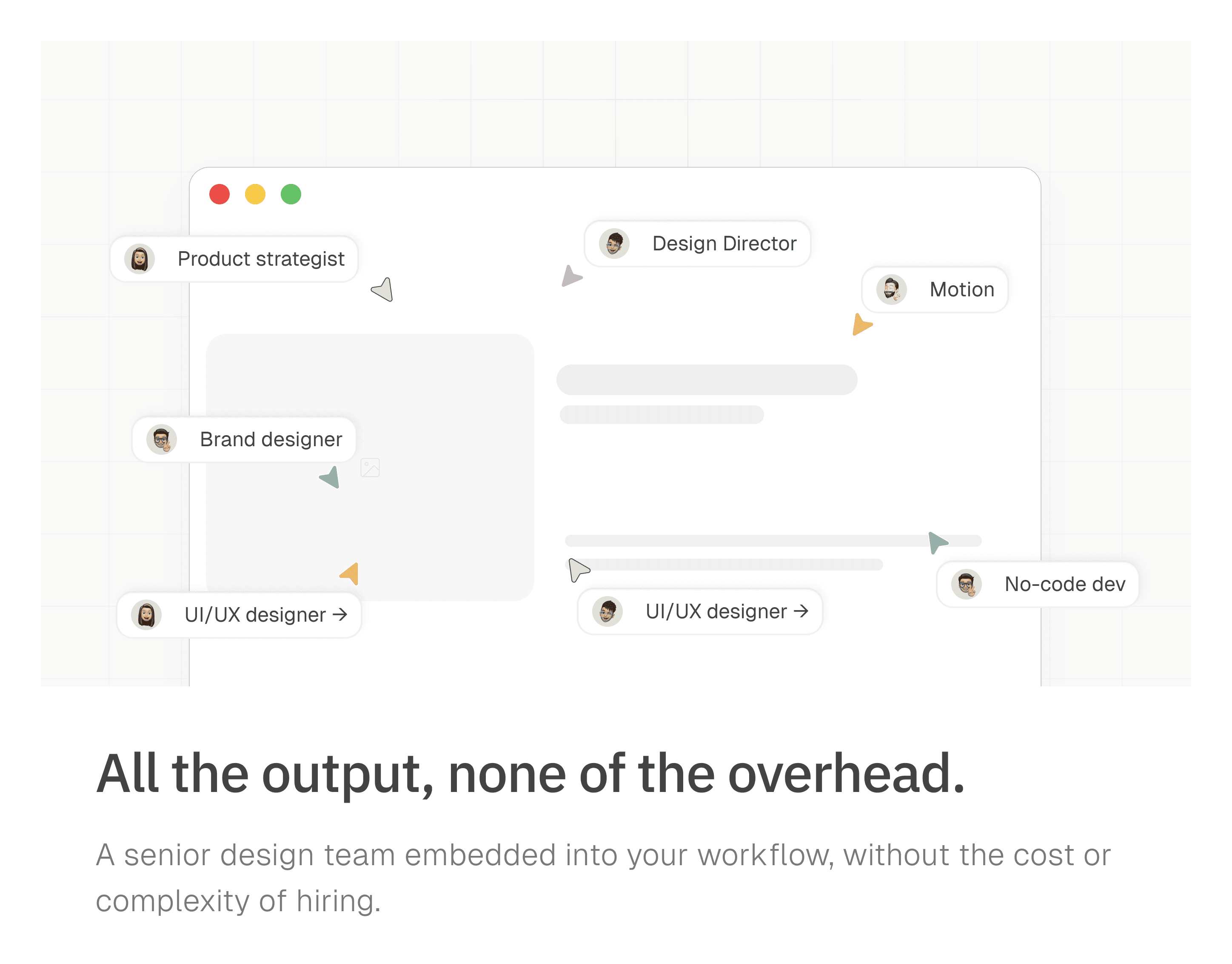 Embedded into your team, delivering brand, product and web design every week.